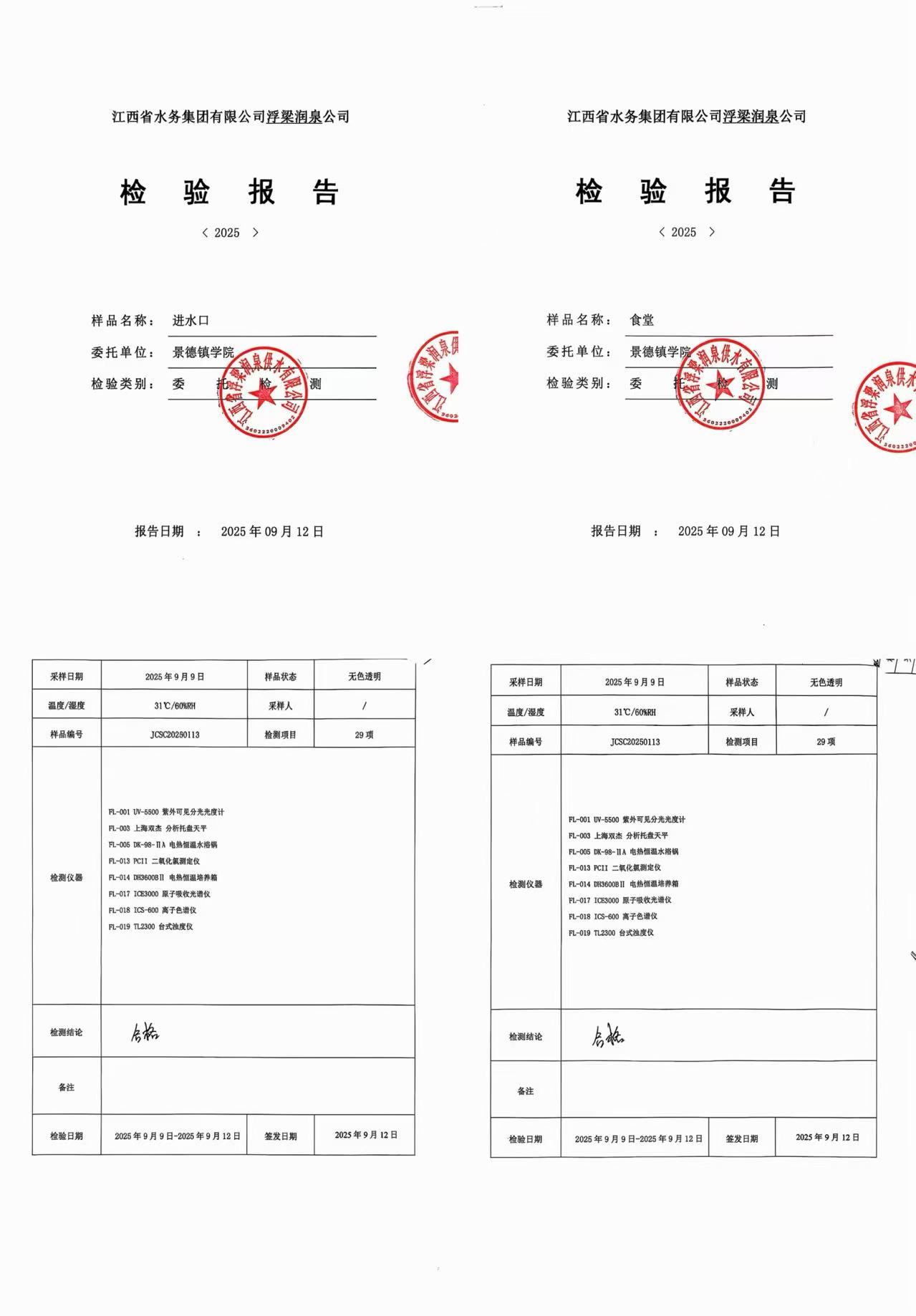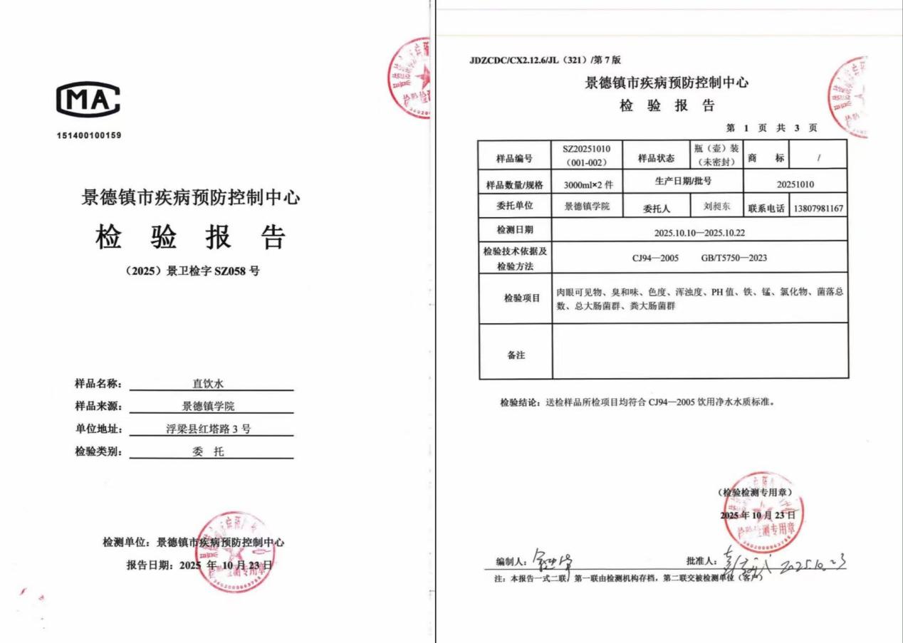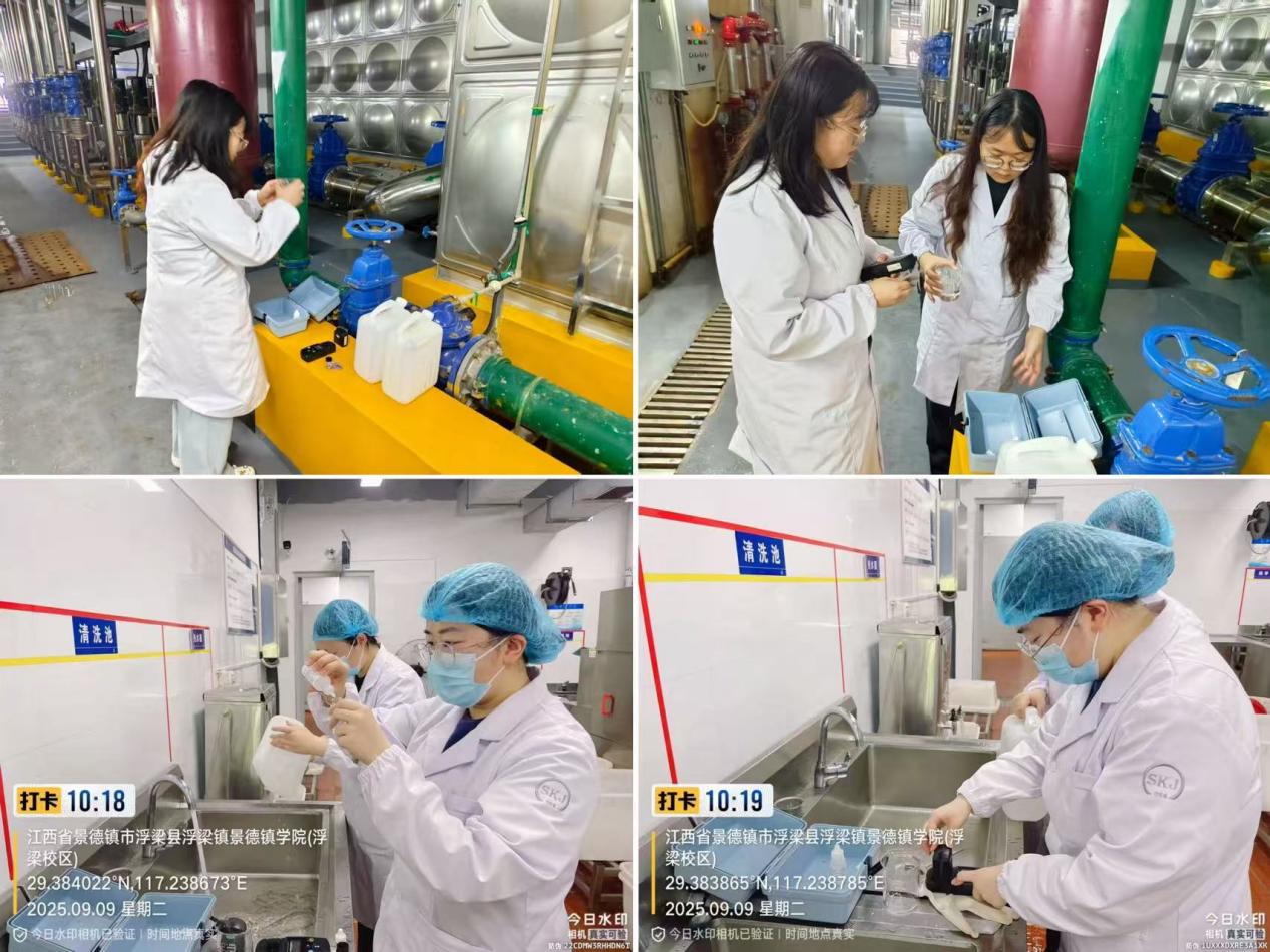 持续保障全校师生的饮用水安全,切实履行监管职责,我校后勤保障服务处于今年9月及10月,分别特邀江西省浮梁润泉供水有限公司与景德镇市疾病预防控制中心两家专业机构来校,对校园生活饮用水进行了系统性的抽样检测。9月的检测覆盖了学校二次供水水泵房进水口、食堂、教学楼、图书馆;10月则重点对西四学生宿舍、东1学生宿舍等区域进行了抽样。此次系列检测,彰显了学校对二次供水这一关键环节水质安全的高度重视。