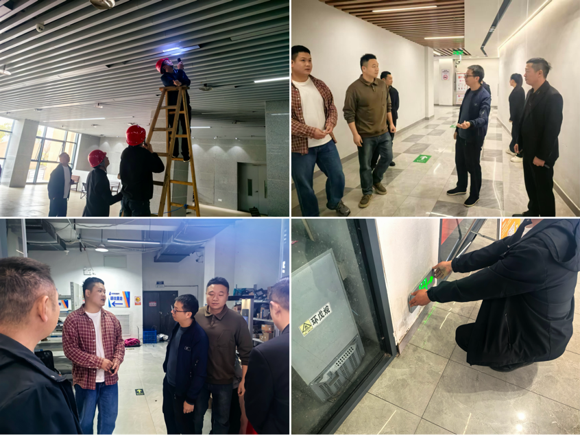 此次排查聚焦校园人员密集、用电负荷高的重点场所,排查组先后深入图书馆、产教大楼负一层商业区,采取实地查验、逐项检测、细致核查的方式,对各类电气设施运行状态进行全面排查。在图书馆,工作人员重点检查LED照明灯具、强电间配电箱等关键设施,发现部分灯具镇流器内部元件老化、线路绝缘层破损,通电启动时易受电流冲击引发短路,存在明显火灾安全隐患,排查人员当场详细记录隐患位置与具体问题。随后,排查组前往产教大楼负一层商业区,针对消防配套设施、用电线路铺设、配电设备运行等情况逐一核查,全面梳理用电与消防安全风险点。